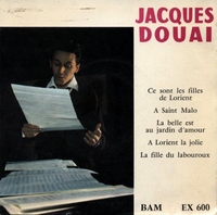 Après les filles de Janzé, voici venues celles de Lorient et c'est euh, enjoué. Certes Jacques Douai n'est pas précisément le genre d'interprète qu'on peut s'attendre à trouver sur B&M, mais pour les filles de Lorient on peut bien faire un effort, d'autant que cette chanson ne figure pas parmi le matériel facilement accessible sur le web. En fait le disque a même l'air presque introuvable, il n'est pas même signalé dans cette discographie. Pour l'année j'hésite entre 1957 (date du récital n°4 et du pressage BAM LD 330 dont sont extraites ces chansons) et 1962 (il est sorti un 45T BAM EX 611 en 1962 du même J. Douai).